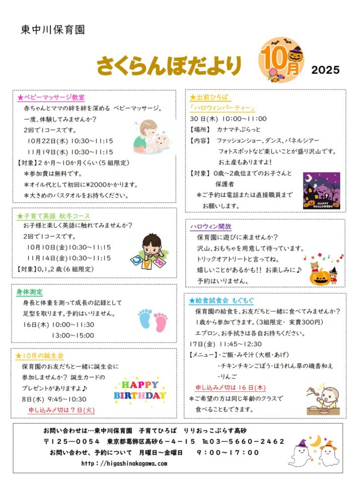さくらんぼだより・イベントカレンダー【2025年10月号】を更新しました。 お知らせ さくらんぼだより 2025.10.01 さくらんぼだより・イベントカレンダー【2025年10月号】を更新しました。 pdfはこちらからご覧ください。 SHARE TWEET LINE