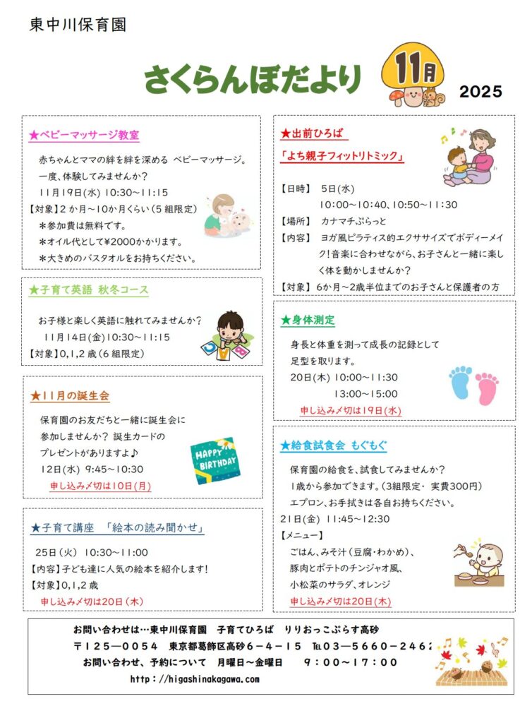 さくらんぼだより・イベントカレンダー【2025年11月号】を更新しました。 お知らせ さくらんぼだより 2025.11.05 さくらんぼだより・イベントカレンダー【2025年11月号】を更新しました。 pdfはこちらからご覧ください。 SHARE TWEET LINE